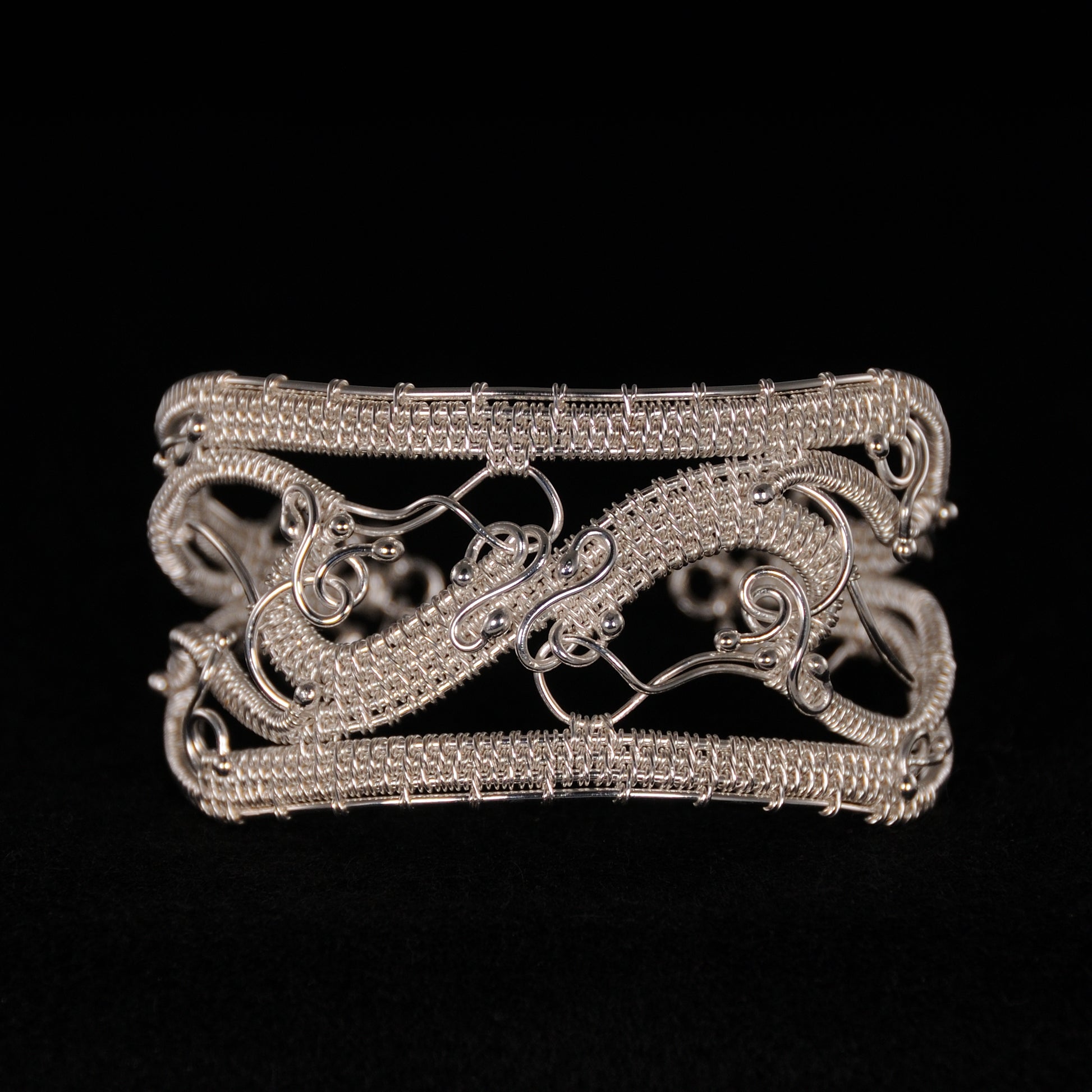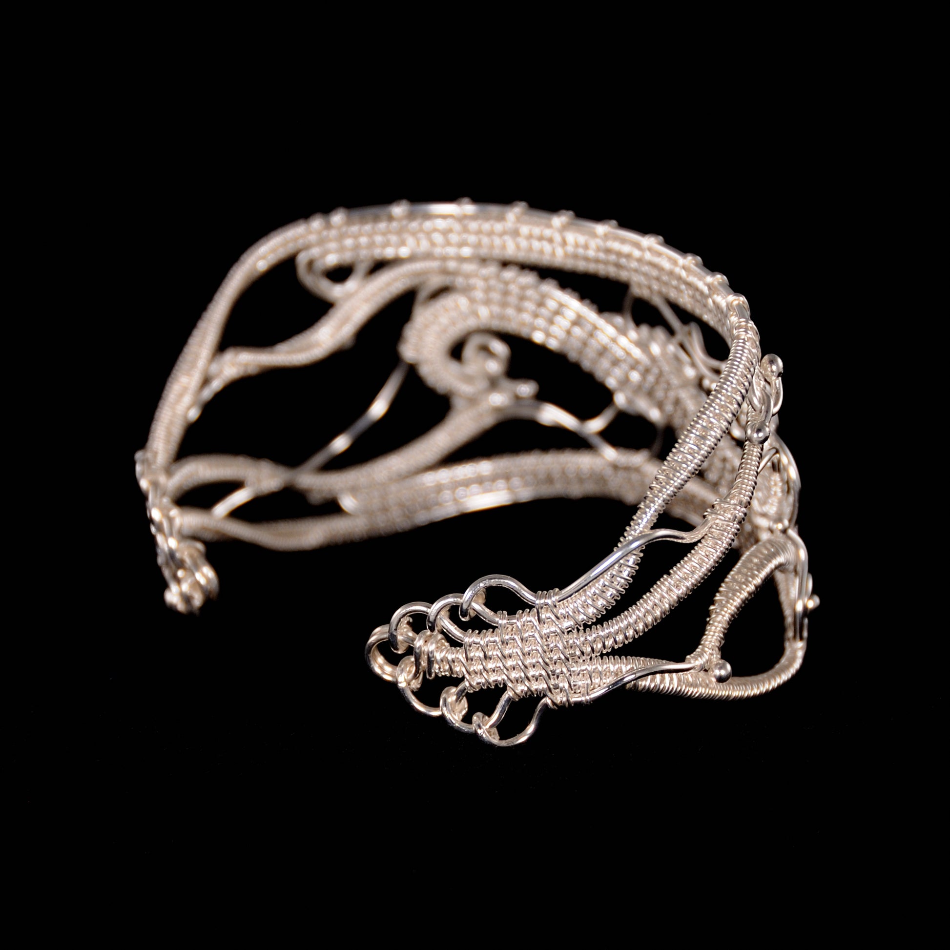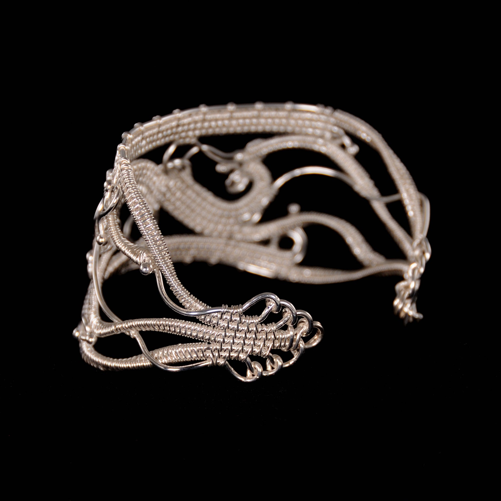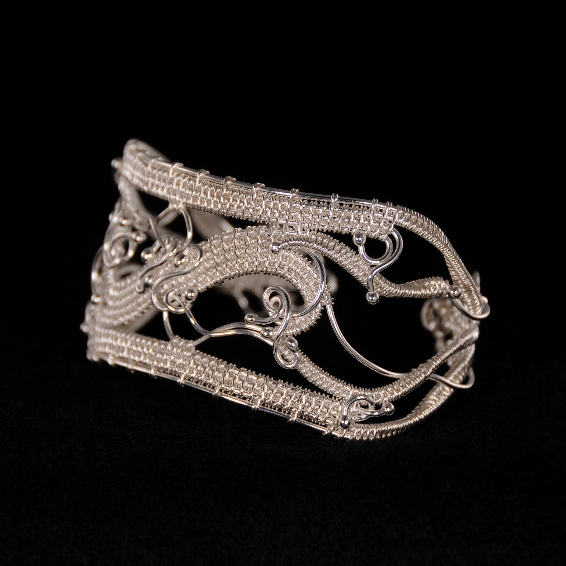 Wide fine silver bracelet of myriad bubbles and waves splashing out their brilliant presence.